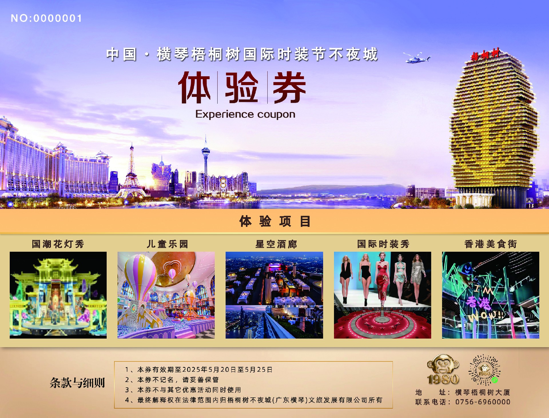 - 以珠澳天际线为幕,缔造亚洲首创“天际即幕布,城市即秀场”的震撼场景。全球仅有的「双城双域,时尚通行证一猴卡,邀您坐享黄金席位,沉浸式体验炫酷舞台与幻彩光影交织的国际时尚大秀。秀后云端After Party,与时尚名流共赴微醺之夜,解锁粤澳夜生活魅力。 -